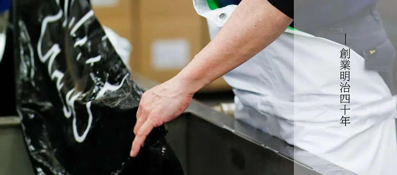 水野染工場では古くからの伝統を受け継ぎ、主に「引染(ひきぞめ)」と「捺染(なせん)」という本染技法を用いて商品をおつくりしています。手染めならではのあたたかく独特な風合いは、 機械染めには出せない良さがあります。