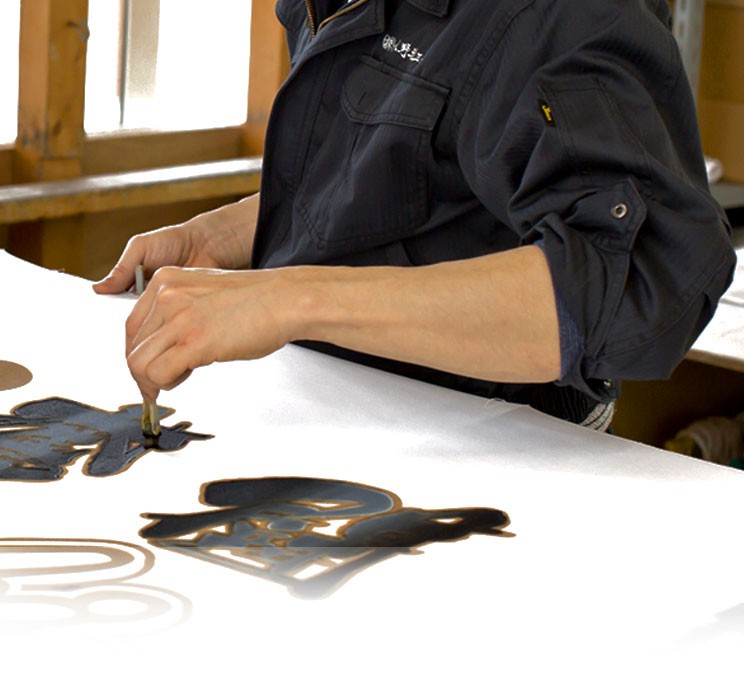私たち水野染工場の横断幕であれば、書道家や先生などが書いた筆文字をトレースしてデザインを再現して染め上げることも可能です。「人が書いた文字でオリジナリティを出したい!」という場合は、お気軽にご相談ください。