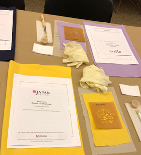 Ruri さんはNY 在住。しかし、このワークショップを開催するにあたり約1ヶ月間日本に滞在し、手ぬぐいの生地が織りあがる工程を学ぶ所からスタートされました。